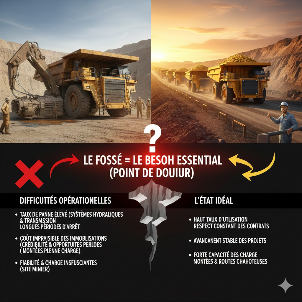 Taux de panne très élevé (systèmes hydrauliques et transmission fréquents) et longues périodes d’arrêt.Haut taux d’utilisation du véhicule, respect constant des contrats et avancement stable des projets.Coût imprévisible des immobilisations : Chaque jour d’arrêt coûte plus que le simple carburant ; c’est la crédibilité contractuelle et les opportunités futures perdues. C’est le plus grand “point de douleur”.